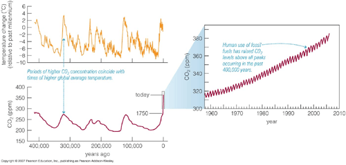 A Global Warming Primer Note: All figures below are from my textbooks and based on published scientific data. Most misconceptions about global warning surround confusion over what is "certain" and "uncertain" in the science behind it. Some parts of the science are indeed uncertain, but others are not. To clarify which is which, here are four questions that everyone should ask (and be able to answer) about global warming: Question 1: The basic claim of global warming is that a higher atmospheric concentration of carbon dioxide will make Earth warmer. Is there any doubt that, all other things being equal, higher carbon dioxide concentrations do indeed make planets warmer?