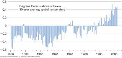 Answer: Not any more. For awhile, there were questions concerning whether temperature data were being analyzed correctly, but those doubts have been almost entirely dispelled (see the second and third items in the "postscript" section below). Since the dawn of the space age, we've had satellite data from which to make measurements of Earth's global average temperature. Data from earlier times were local rather than global, which means there are greater uncertainties in converting them to a global average. However, by studying a great variety of data sources (ranging from newspaper temperature reports to natural records like those in tree rings), the uncertainties have been reduced enough to make the trend quite clear. The graph below shows the results: The global average temperature has increased about 0.8°C (1.4°F) in the past century, and the warming appears to be accelerating during recent decades.